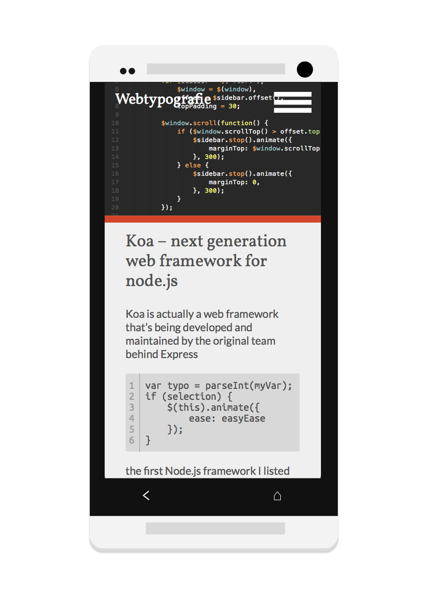 Further two different typefaces should achieve some hierarchy. The serif typeface “Vollkorn” developed at FH Potsdam is used in headlines and the relatively calm “Lato” is used for text.