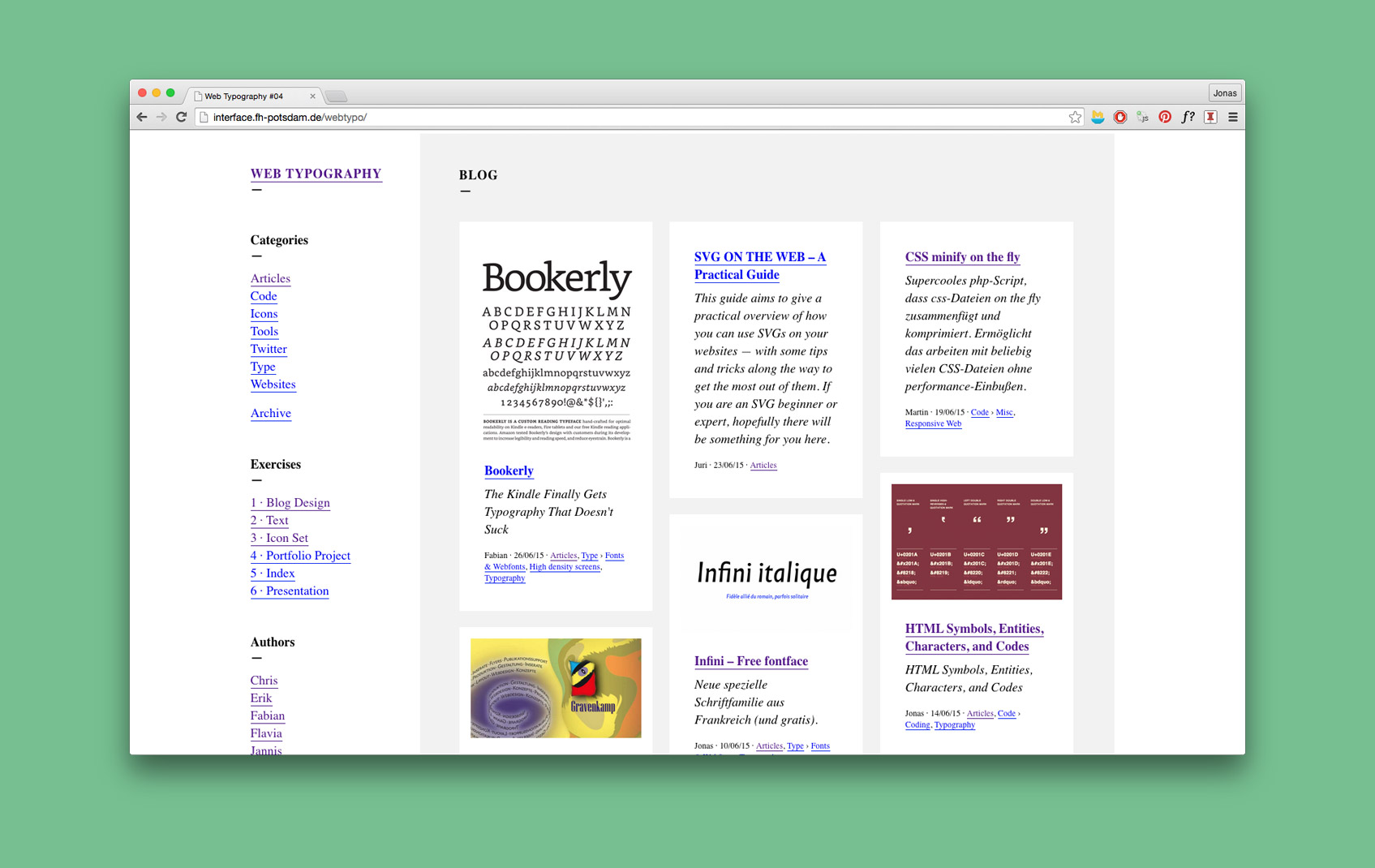 The task to redesign the more or less unstyled wordpress blog was the first exercise of the webtypography course.
